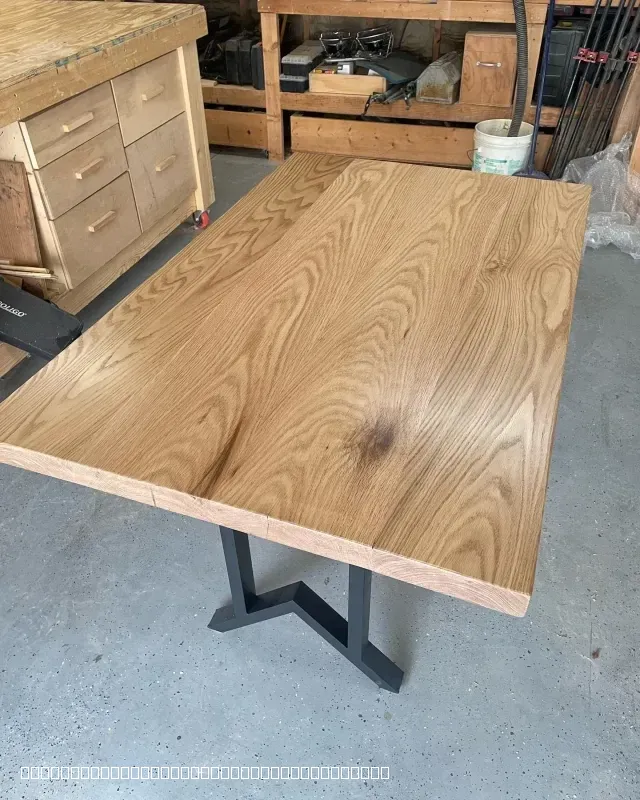 Custom Oak Dining Table with Metal Base